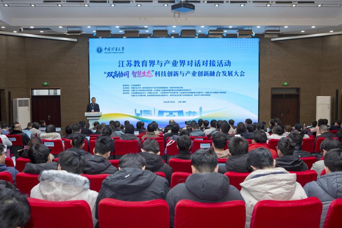 1月4日,江苏教育界与产业界对话对接活动——“双高协同 智慧生态”科技创新与产业创业融合发展大会在我校召开。省教育厅、徐州市各有关部门负责同志,有关高校职能部门负责人和专家代表、产业界代表等近200人参加活动。